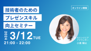 3月12日(火)21:00~開催!技術者のためのプレゼンスキル向上セミナー 講師:小泉陽以(アナウンサー、元エンジニア)